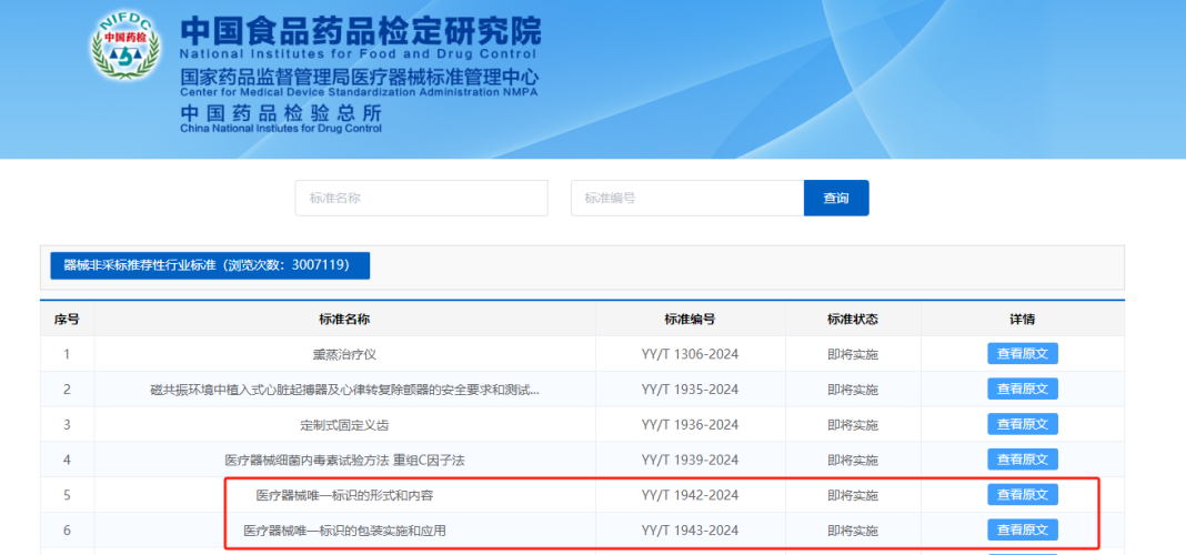 查询路径:中国食品药品检定研究院官网首页—数据查询—医疗器械标准—器械非采标推荐性行业标准
