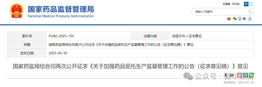 事关药品受托生产监管!国家药监局再次公开征求意见
