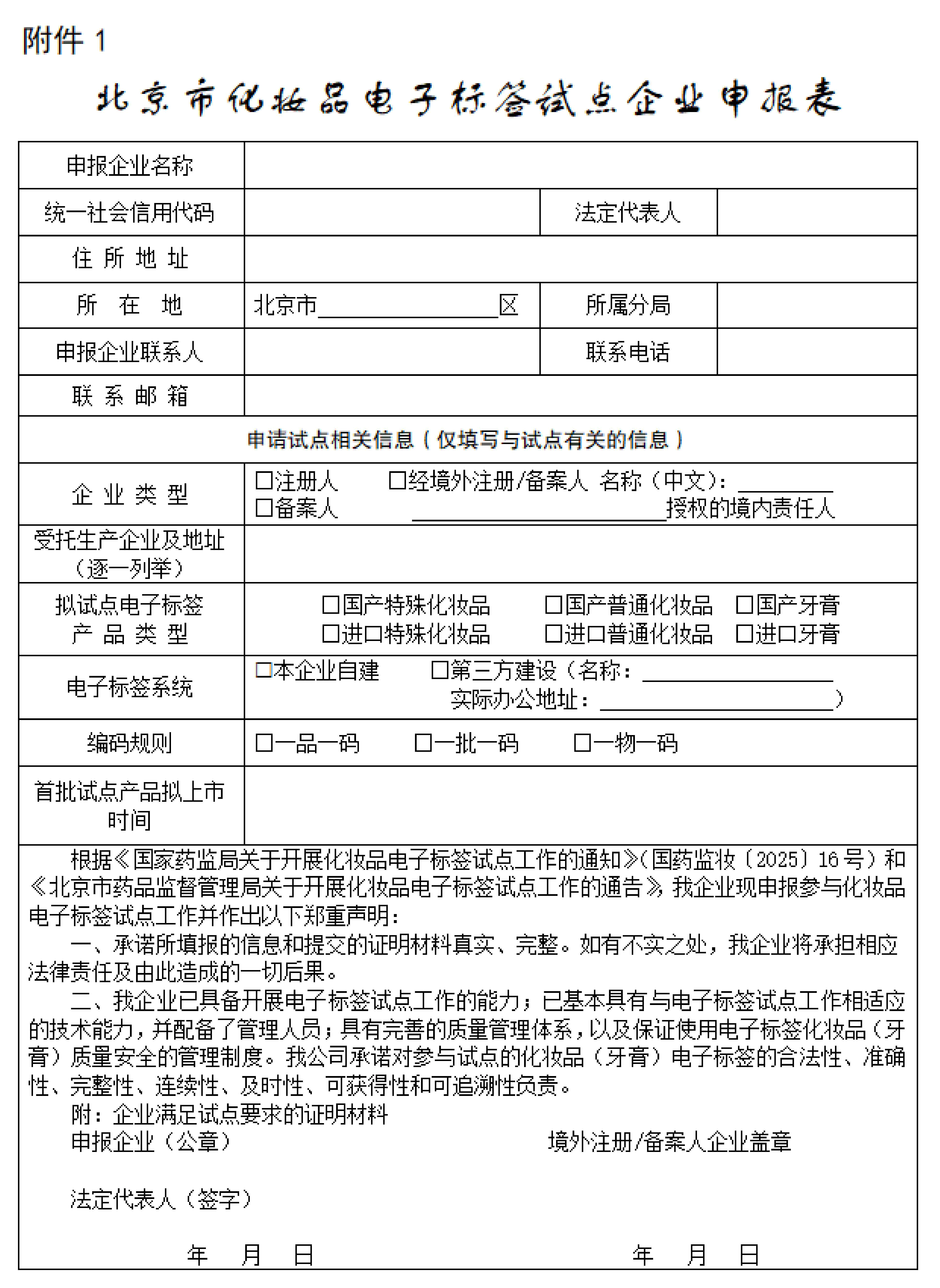 北京药监:关于开展化妆品电子标签试点工作的通告